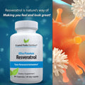 - Cellular function: Resveratrol is a powerful antioxidant that works on the cellular level improving the function of all major organs in your body, including circulation that can give you more energy.
