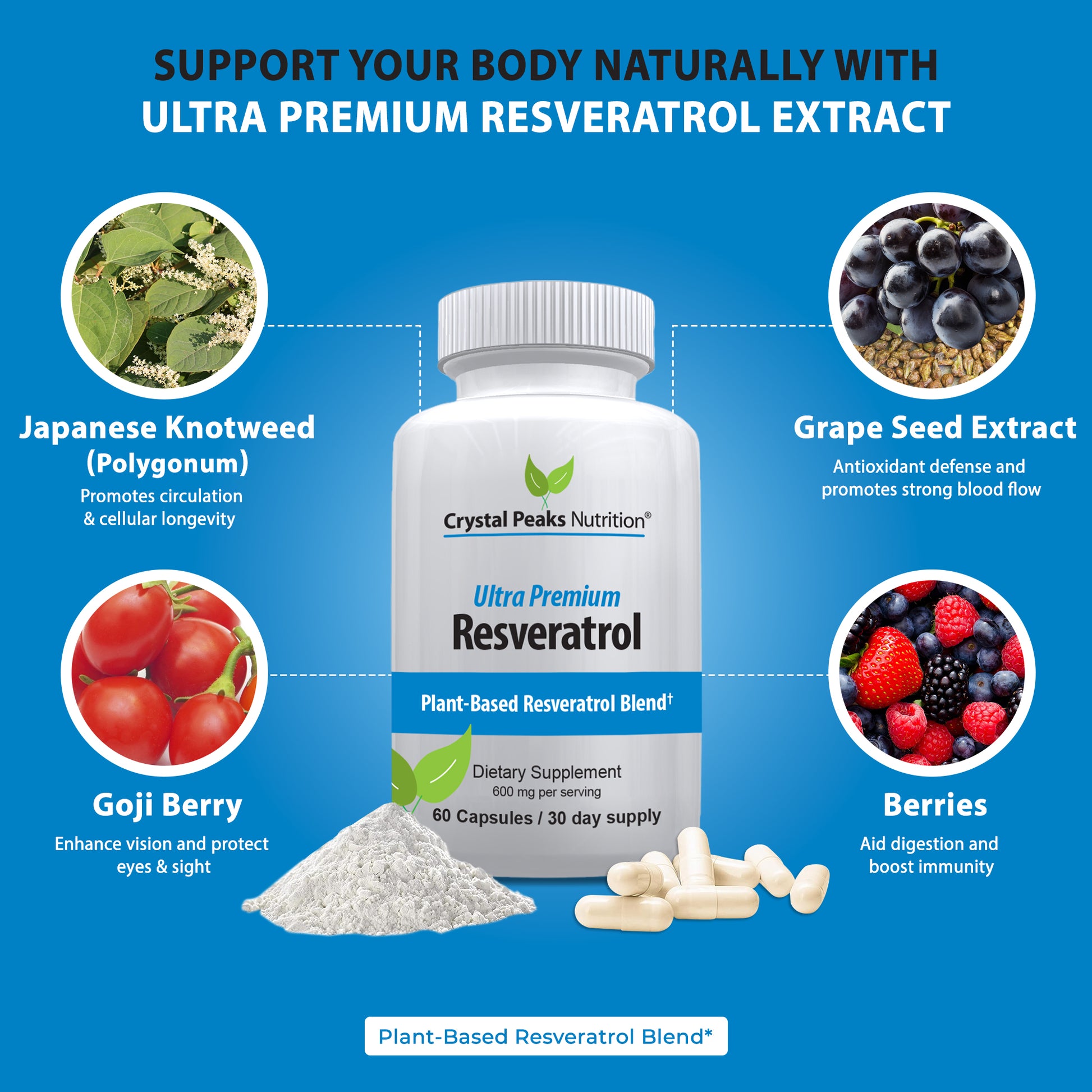 - Formulated by Crystal Peaks Nutrition: The trusted name in supplements. Ultra Premium Resveratrol is a leading natural supplement to support longevity.