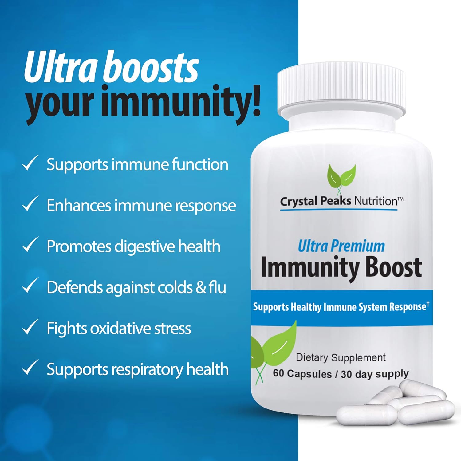 Great value: Crystal Peaks Nutrition's Ultra Premium immunity vitamins includes sixty (60) capsules for a one month supply. Don’t get sidelined – keep your immune system strong and stay in the game.