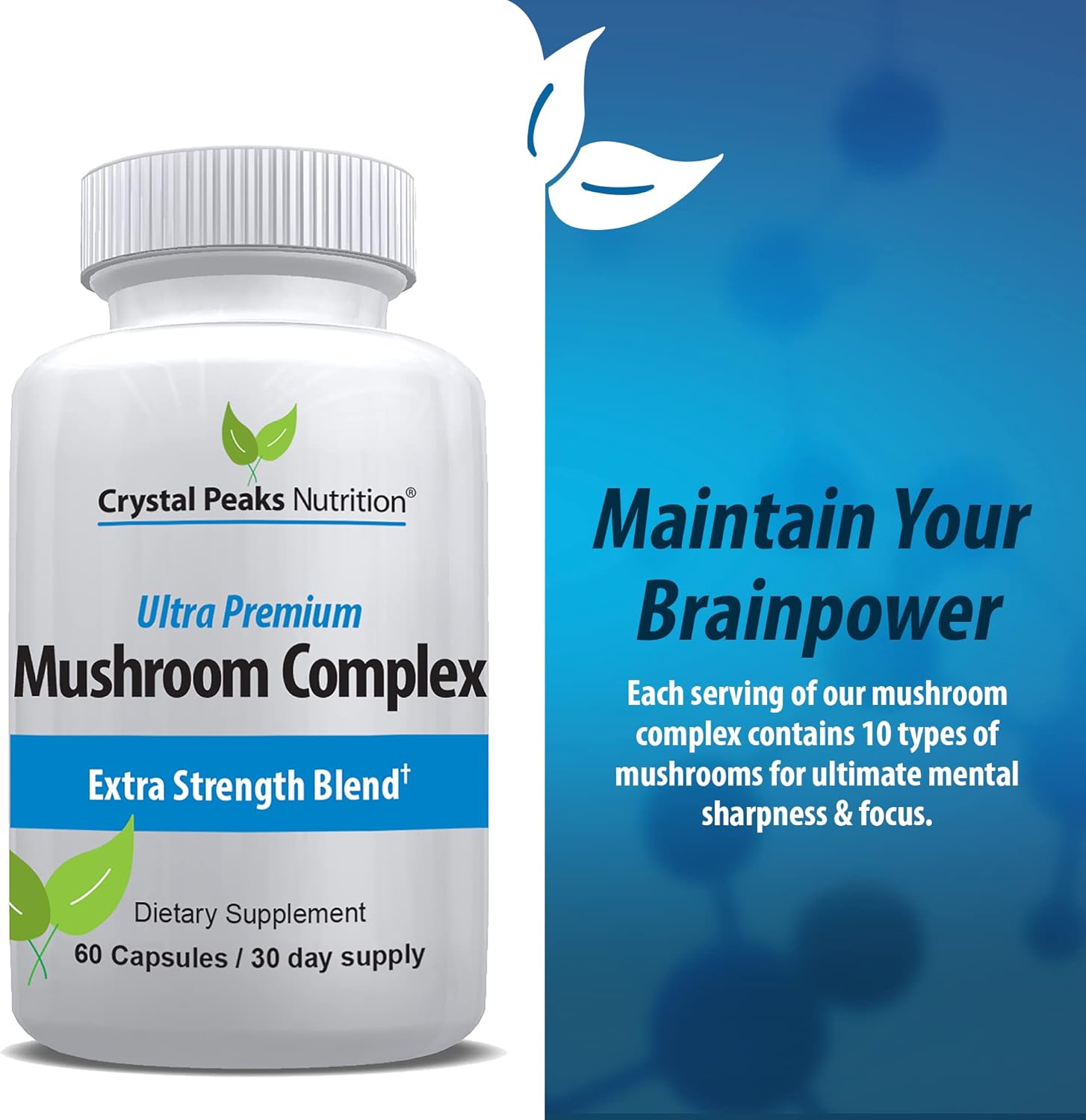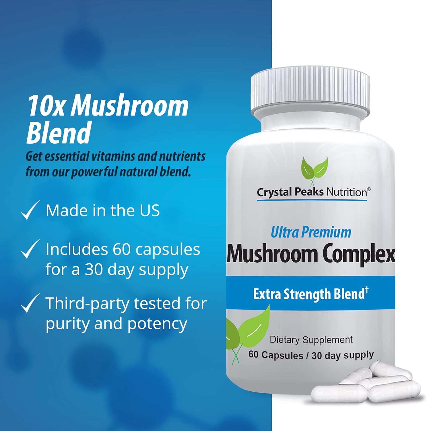 - Supercharge your body with this premium mushroom supplement from Crystal Peaks Nutrition. Mushroom Superfood offers a mushroom blend of 10 organic whole food mushrooms in an easy to swallow mushroom powder capsule.